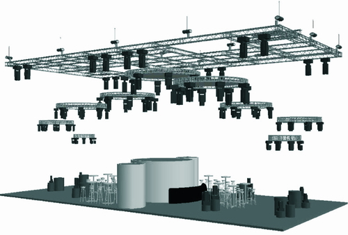 首先,我们建立三维建筑模型(在CAD建模过程中,我们注意了模型度对运算结果的影响,尽量提高模型的近似度以保证运算结果的可参考性),选用EASE音箱驱动设备库中适当的音箱,安置到模型中我们所预期的位置,并以三维坐标形式表达建筑内部结构和音箱方位、音箱投射角度,同时给各音箱加以不同的驱动功率,经过计算,可准确地模拟计算出声音的覆盖范围、声压的分布、声音的清晰度、传声增益等,并将计算出的效果转化为视觉效果,这是一种实用而又有效的设计方法。